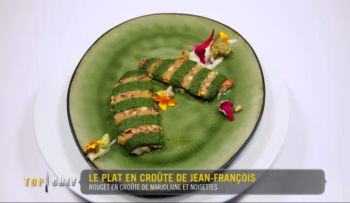 Découvrez le délice du "Rouget en croûte de marjolaine et noisettes", un plat raffiné alliant la finesse