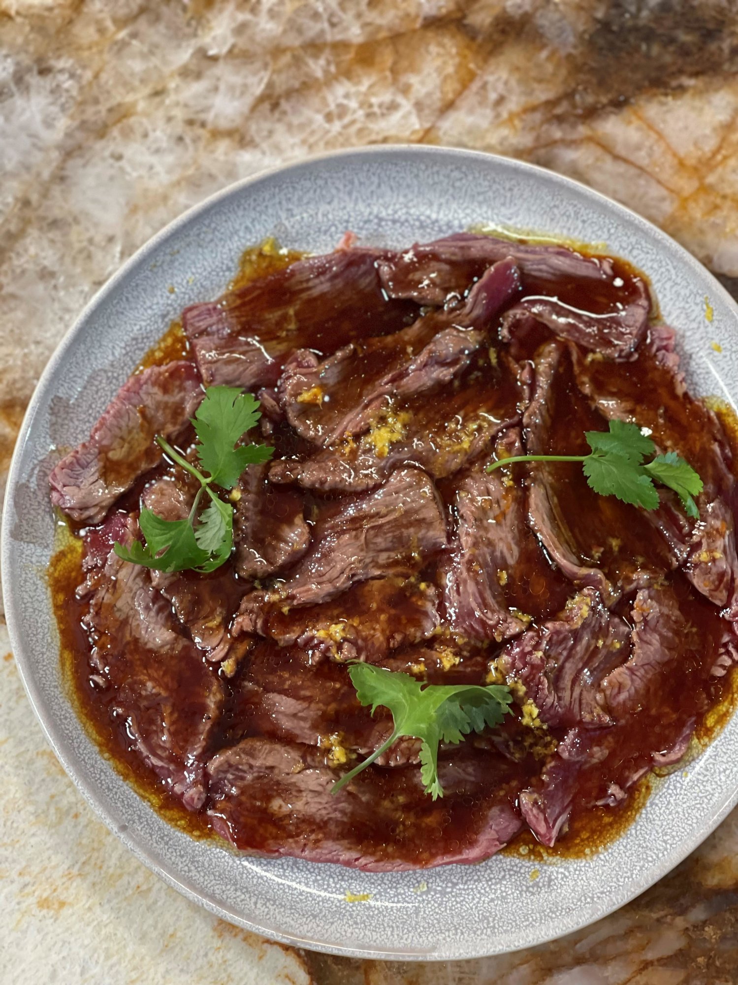 Découvrez l'explosion de saveurs de ce bœuf mariné façon Cyril Lignac, sublimé par une vinaigrette asiatique à