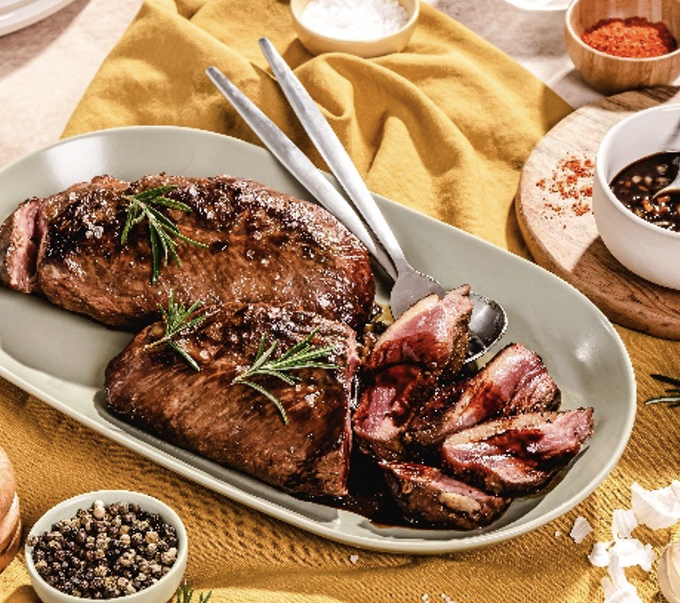 Savourez un magret de canard parfaitement doré, sublimé par une sauce onctueuse mêlant la douceur du miel