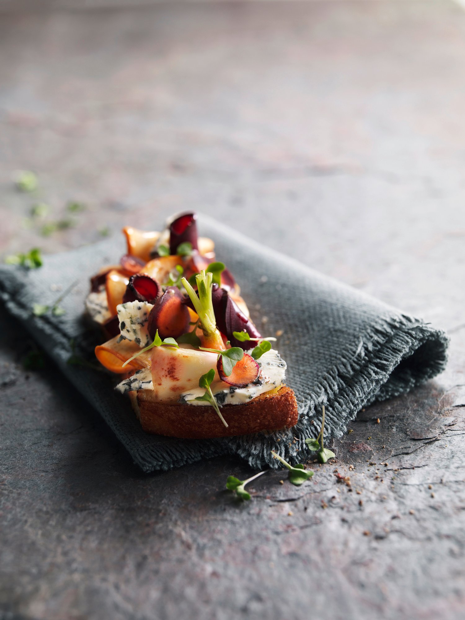 Savourez une délicieuse tartine au Saint Agur, où la douceur crémeuse de ce fromage bleu se marie