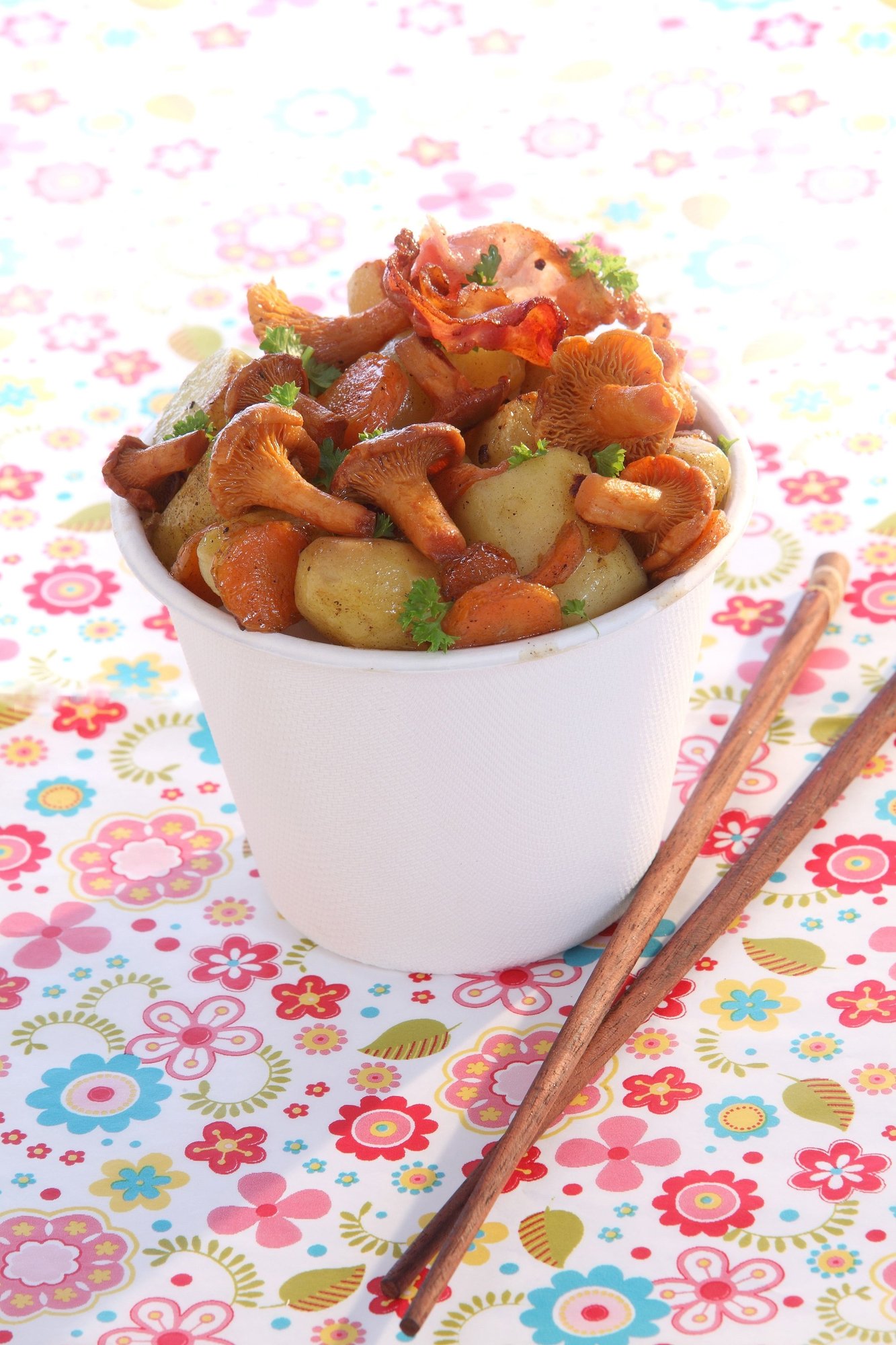 Savourez l’authenticité des "Girolles à la paysanne", un plat réconfortant où les délicieuses girolles, tendres et parfumées,