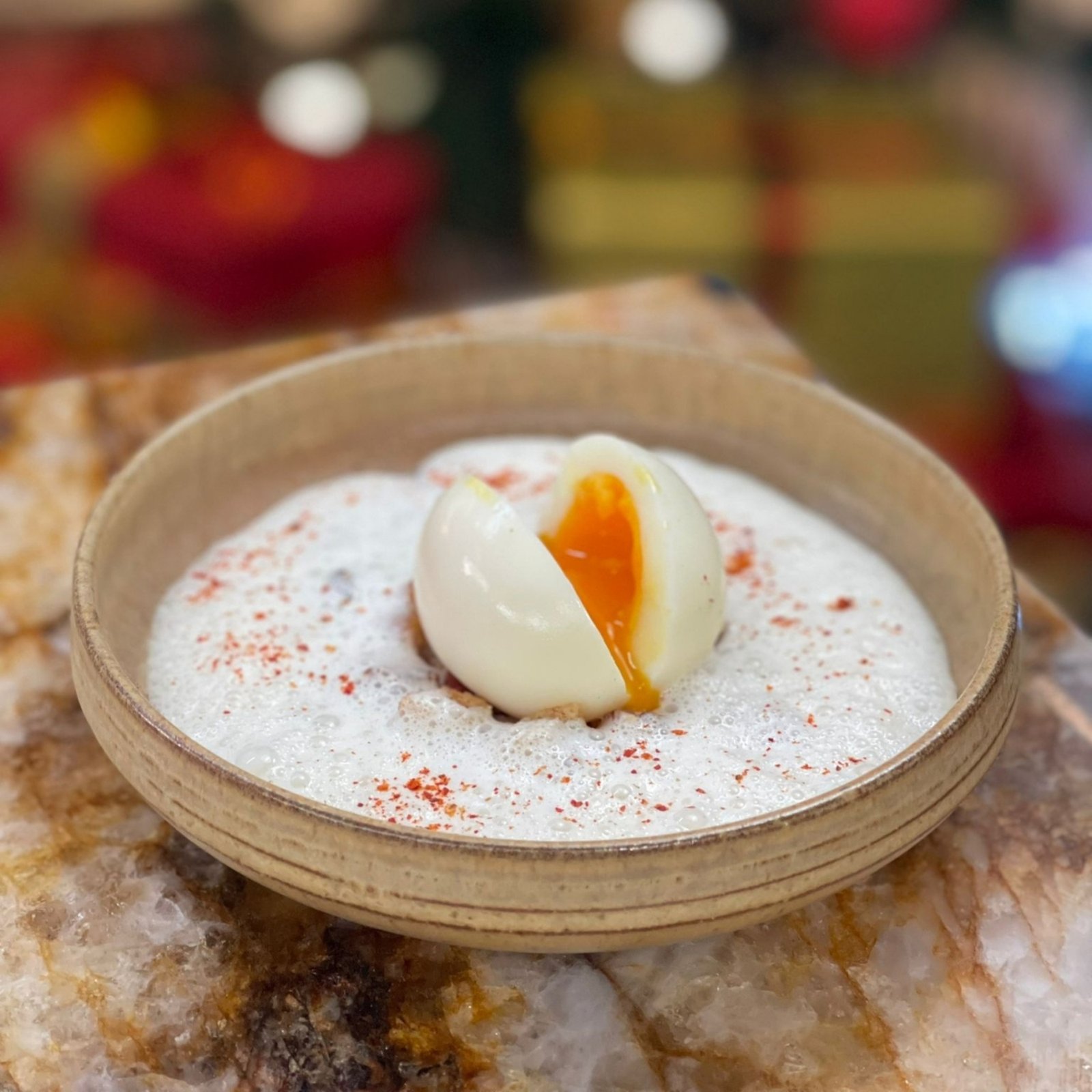 Succombez à l'élégance de l'œuf moelleux à la crème carbonara de Joël Robuchon revisité par Cyril Lignac,