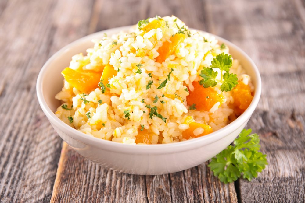 Savourez un risotto potimarron vegan irrésistible, où la douceur du potimarron se marie délicieusement avec la crémeuse