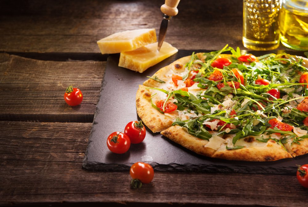 Régalez-vous avec notre pizza diététique tomates, champignons et feta, un délice croustillant qui allie la fraîcheur des