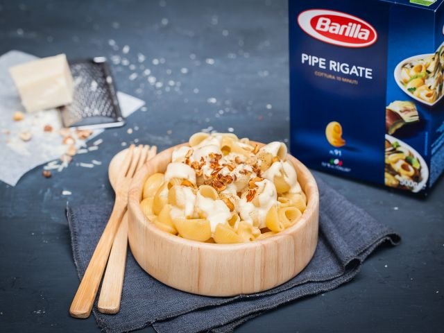 Savourez des Pipe Rigate crémeuses et réconfortantes, enrobées d'un mélange savoureux de trois fromages fondants, le tout