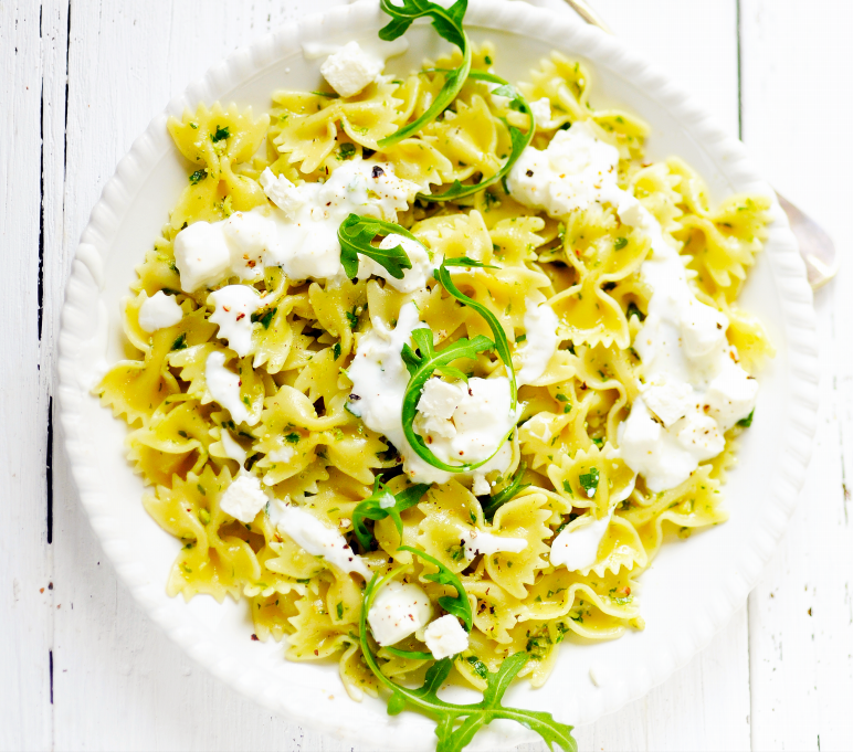 Découvrez l'alliance parfaite entre la légèreté des papillons et la fraîcheur du pesto de roquette, rehaussée par