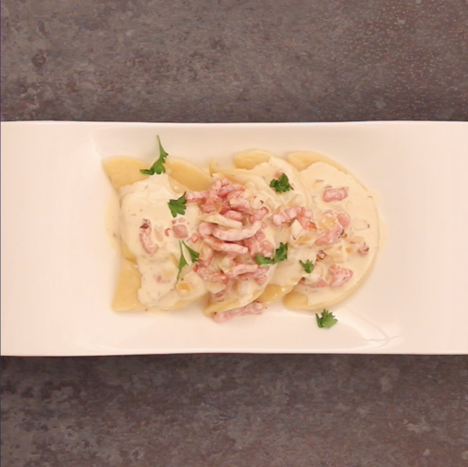 Découvrez la délicieuse Ravioliflette, une réinvention audacieuse de la traditionnelle tartiflette, où des ravioles fondantes se mêlent