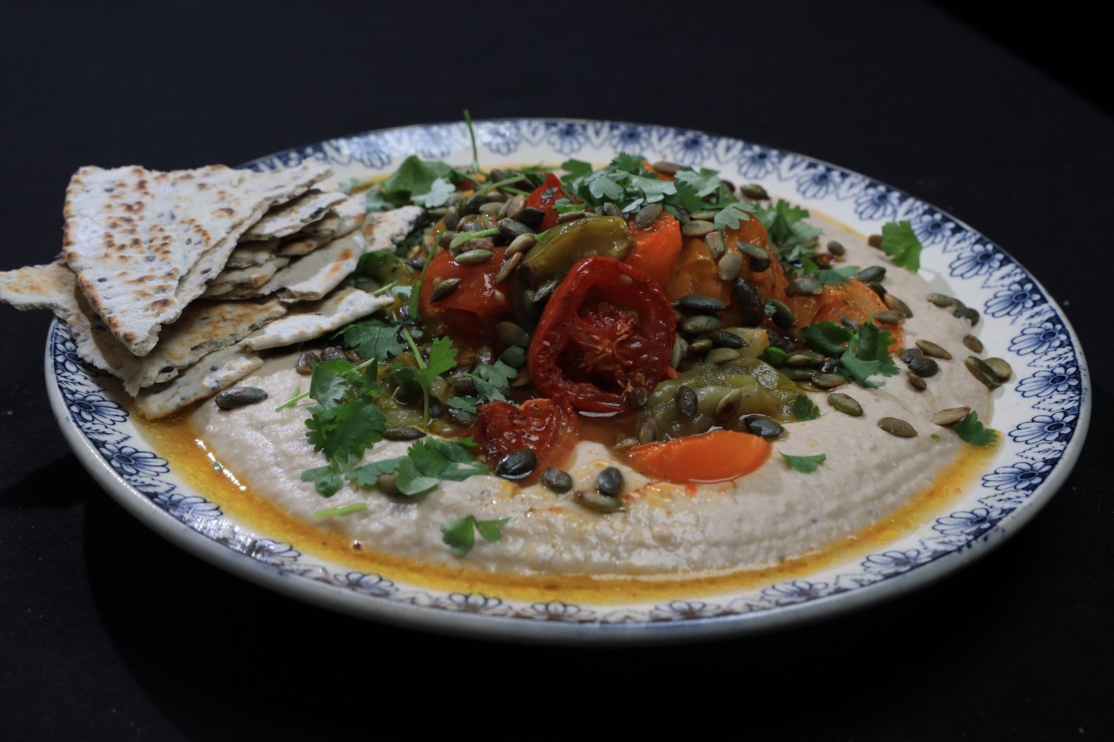 Découvrez la délicieuse recette de tomates rôties hummus d'haricots blancs de Loïc Fou de Cuisine, une fusion