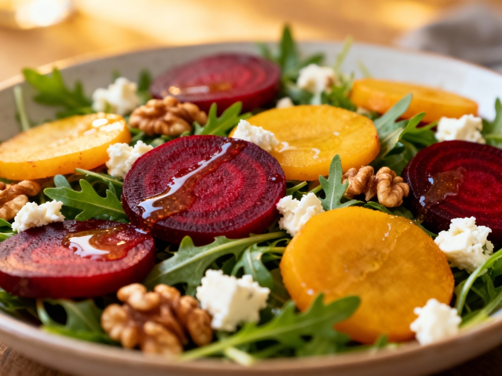 La betterave rouge, râpée ou finement tranchée, se marie parfaitement avec des ingrédients au caractère affirmé. Parmi les plus surprenants : le hareng mariné, les oignons rôtis aux graines de cumin, ou encore la pomme fraîche et l’aneth. Ces alliances jouent sur les contrastes de texture et de goût, tout en mettant en valeur la couleur et la fraîcheur du légume.