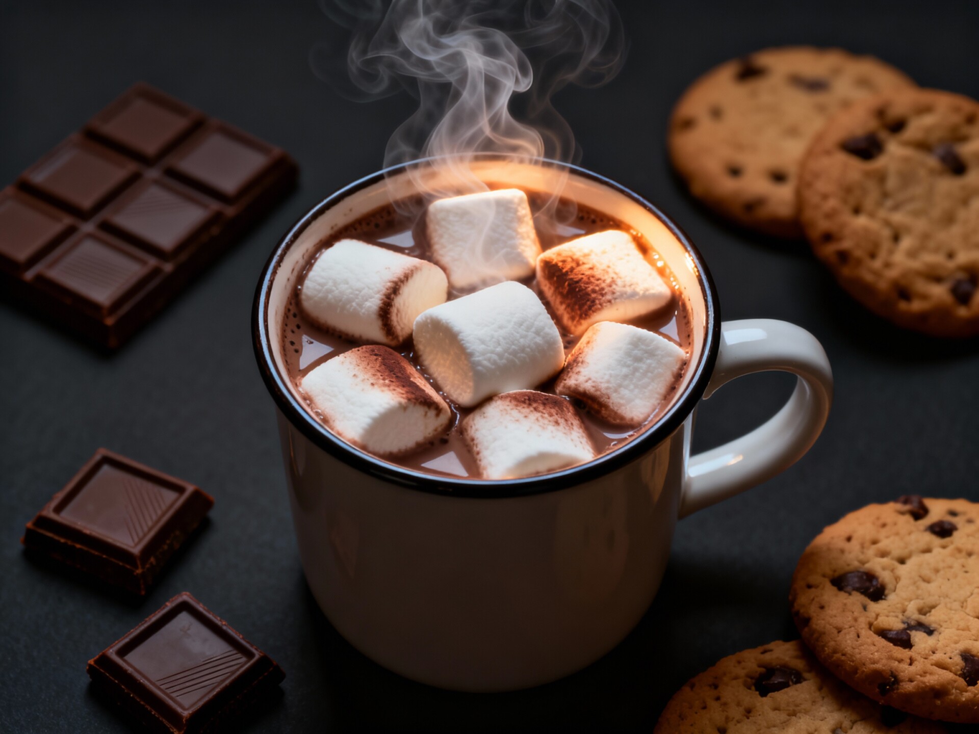 Un chocolat chaud tout en douceur et en nostalgie. La clé de ce moment suspendu ? Des ingrédients choisis avec soin : du lait, un bon chocolat noir, du cacao en poudre, un peu de crème, et pourquoi pas une touche de cannelle.