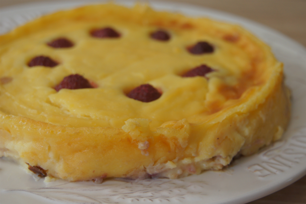 Ajouter quelques framboises sur la crème puis faire cuire 35 minutes.