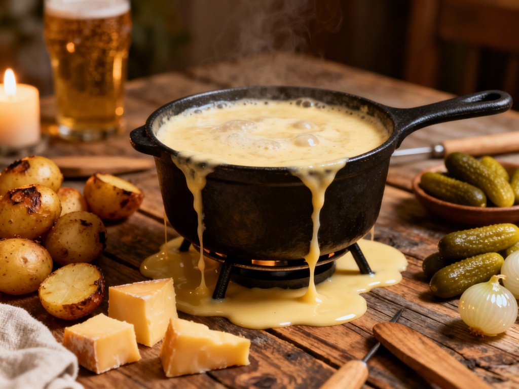 Une recette qui change tout. Dans cette version, la bière blonde se substitue au vin pour accompagner le fromage AOP. Fondue dans le caquelon, elle se marie parfaitement avec un assortiment de fromages et offre une onctuosité surprenante.