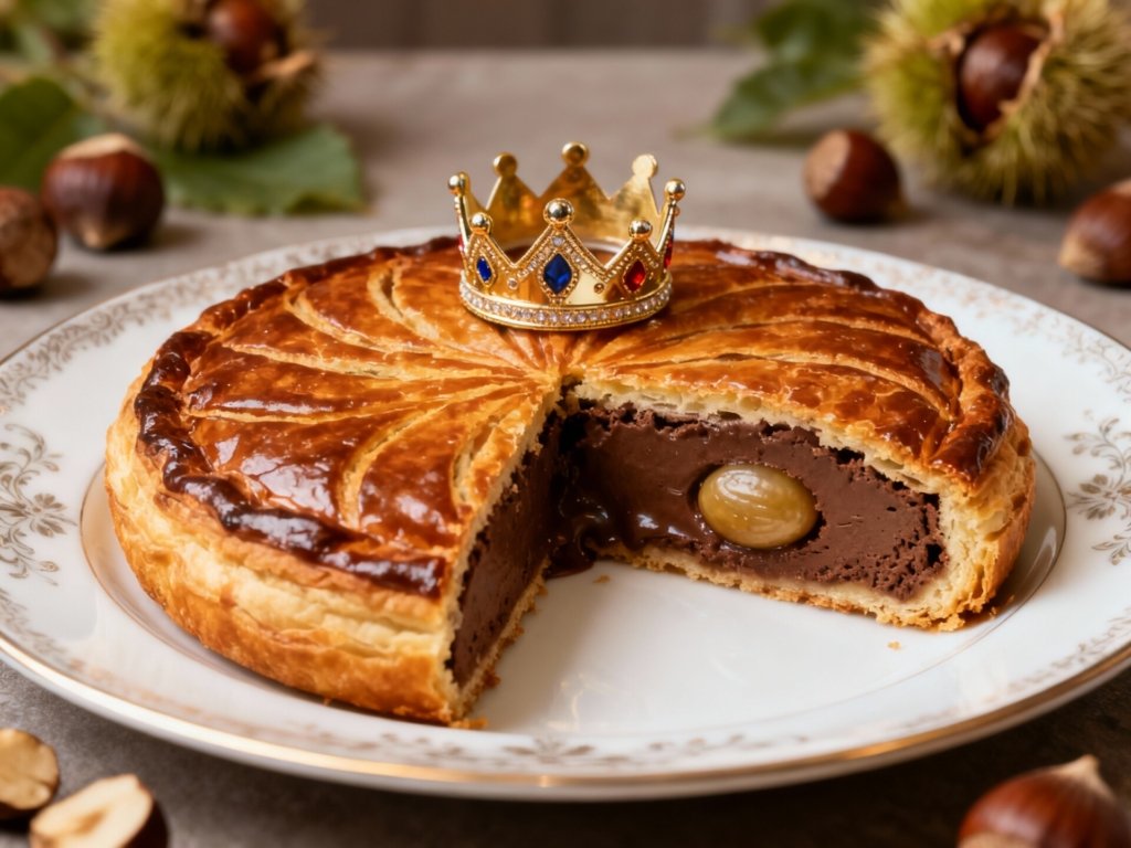 Une galette qui change très légèrement de la traditionnelle frangipane. Mais qui n’a cependant rien à lui envier. Le mélange chocolat, crème de marron, et pâte d’amande un vrai délice.