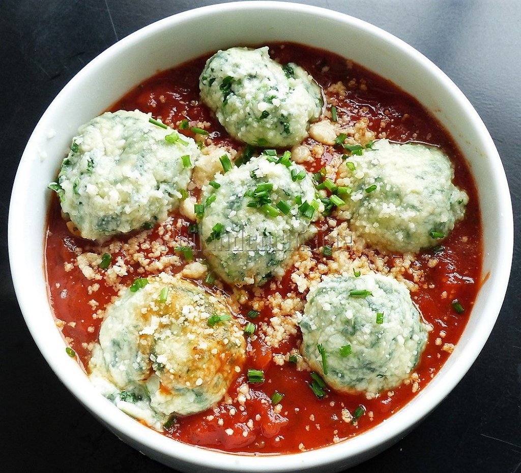 - Garniture de Sauce : Utilisez une cuillère pour créer un tourbillon de sauce tomate autour des gnudi, ajoutant ainsi du dynamisme à la présentation.