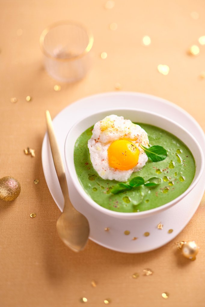 - Assiette contrastée : Utilisez une assiette noire ou d’une couleur vive pour faire ressortir le blanc des îles flottantes et le vert du velouté.