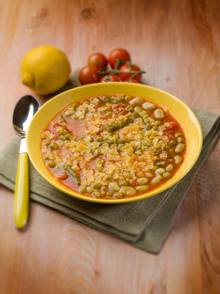 Lorsque la sauce est prête, ajoutez les lentilles et laissez cuire encore 10 minutes. Incorporez le cube de bouillon et ajoutez éventuellement de l’eau. Faites cuire les nouilles avec les lentilles al dente, poivrez.