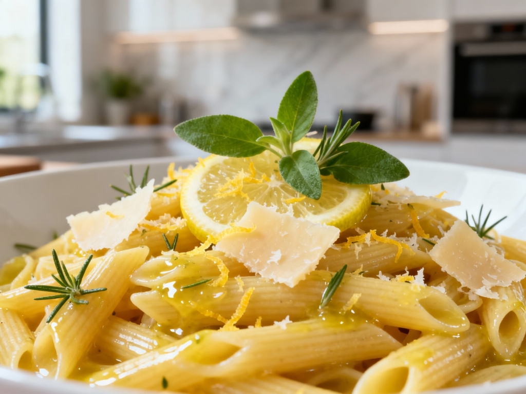 Une recette de pâtes faciles à réaliser avec du citron, du parmesan et de l’origan, idéale pour un repas rapide et savoureux.