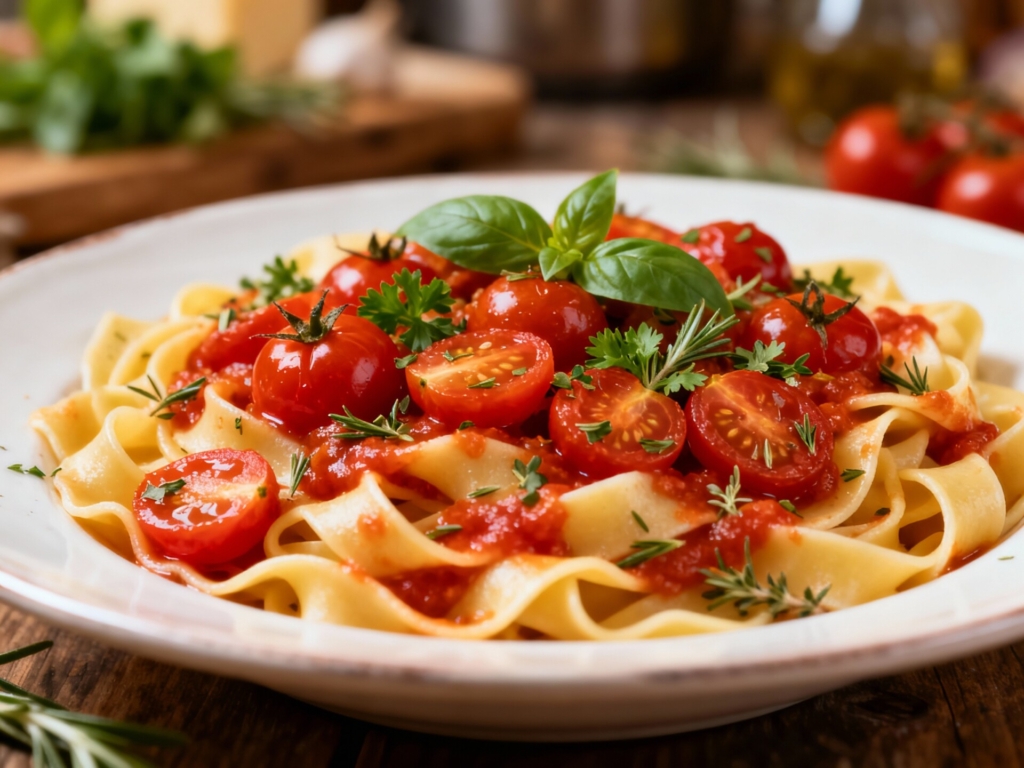 Une recette de pâtes savoureuse avec des tomates cerises et des herbes, parfaites pour un repas estival.