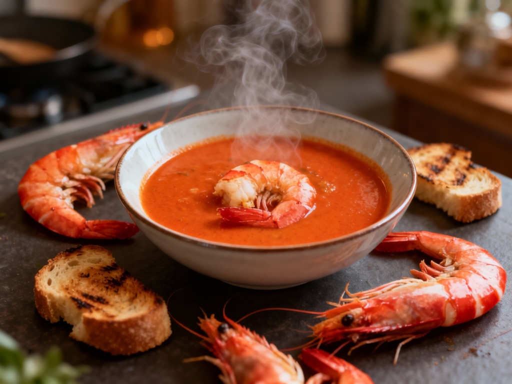 La bisque de fruits de mer classique est luxueusement crémeuse, faite en mélangeant les coquilles de fruits de mer (en général du homard) directement dans la soupe pour un corps et une texture soyeuse. Cette version de crevettes scampi à l’ail utilise la même technique, extrayant le maximum de saveur des coquilles de crevettes, souvent moins chères mais tout aussi délicieuses. Le résultat est un plat robuste qui capture l’essence d’un incontournable italo-américain, parfait pour les dîners.