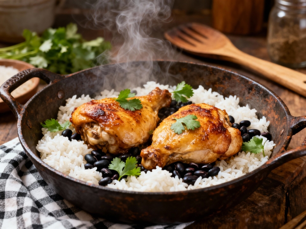 Une quantité soigneusement calibrée de riz et d’eau garantit que tout cuit exactement au même rythme, donc ne l’estimez pas. Préparer votre propre sofrito en semaine est un engagement qui en vaut bien l’effort ; cela fournit une base profondément savoureuse qui parfume à la fois le riz et le poulet. Servez-le avec une cuillerée de crème aigre, des oignons marinés ou des tortillas chaudes pour un dîner copieux qui a le goût qu’il a fallu au moins deux, sinon trois, casseroles pour le préparer.