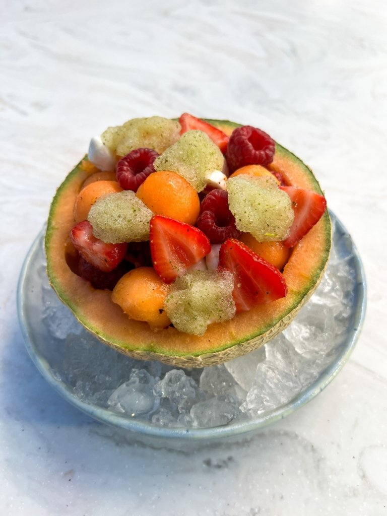 - Montage en Verrine : Réalisez un montage en verrine en alternant les couches de melon, fruits et mozzarella pour un effet visuel époustouflant.
