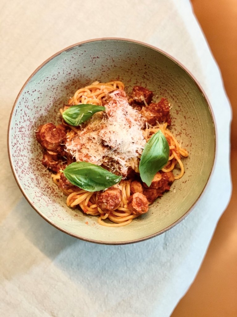 Idées d’Accompagnements et Associations pour Sublimer les Spaghettis aux Saucisses et à la Sauce Tomate de Cyril Lignac