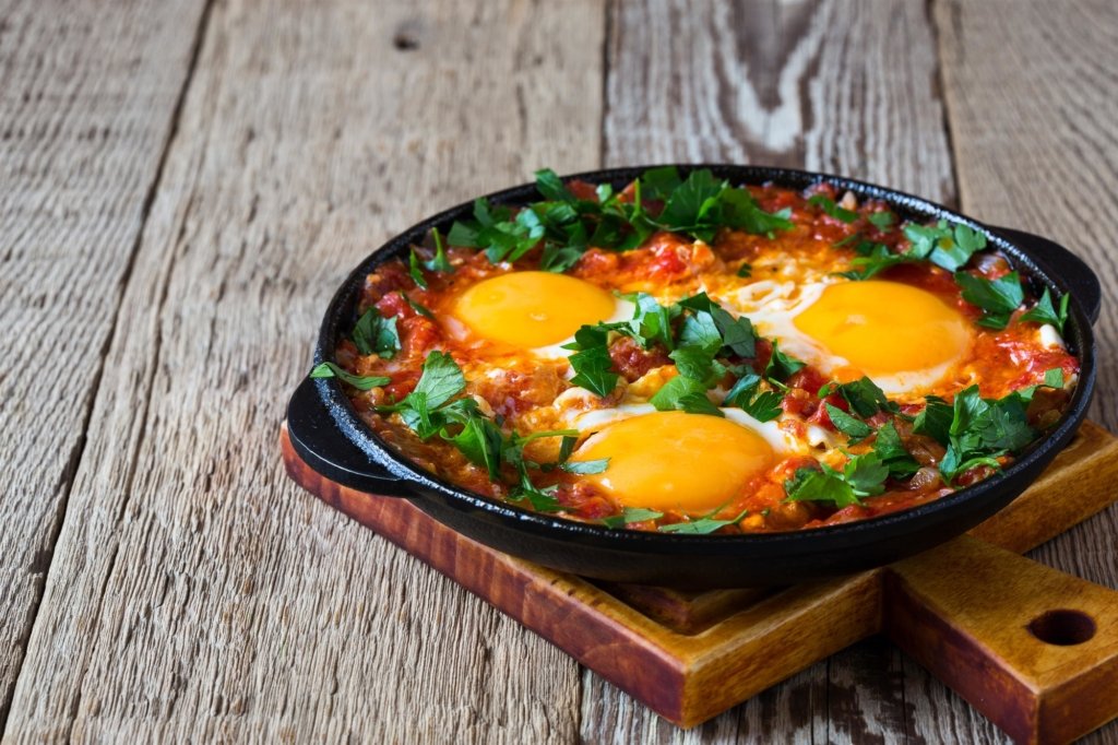 • Pain Pita Chaud : Servez la Tchoutchouka avec du pain pita légèrement grillé pour une texture croustillante et un excellent moyen d’absorber les jus savoureux du plat.