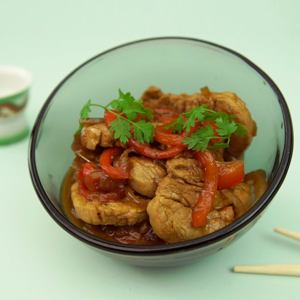 Découvrez le Wok Porc Caramel par FAST[OCHE]®, un plat savoureux où le tendre porc s’enrobe d’une délicieuse sauce caramel, le tout sauté à la perfection avec des légumes croquants pour une explosion de saveurs sucrées-salées qui séduira vos papilles à chaque bouchée !