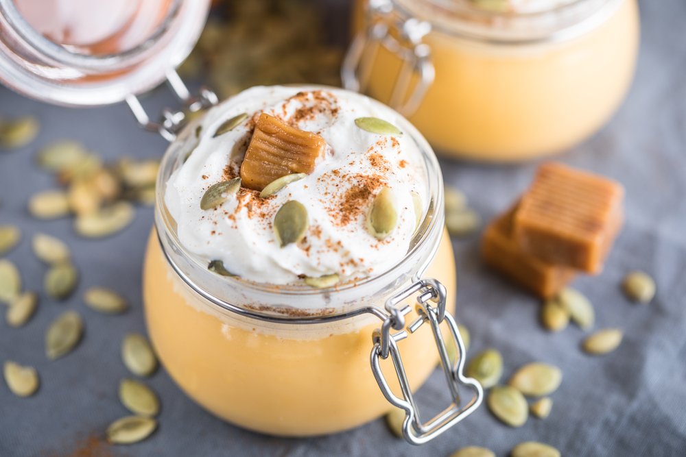 Savourez l'élégance de notre velouté de potimarron au foie gras en verrine, un mariage exquis de la