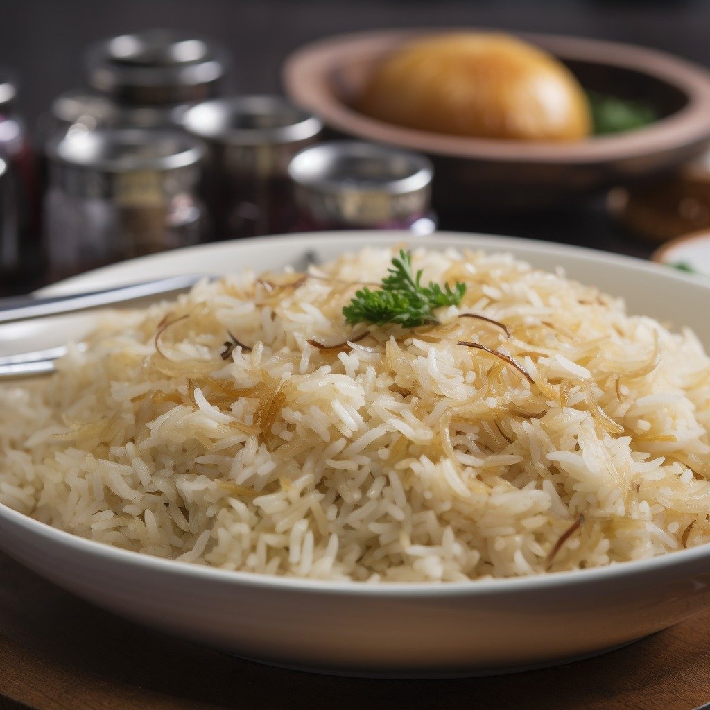 Savourez un délicieux riz basmati aux oignons, où chaque grain parfumé se marie à la douceur des