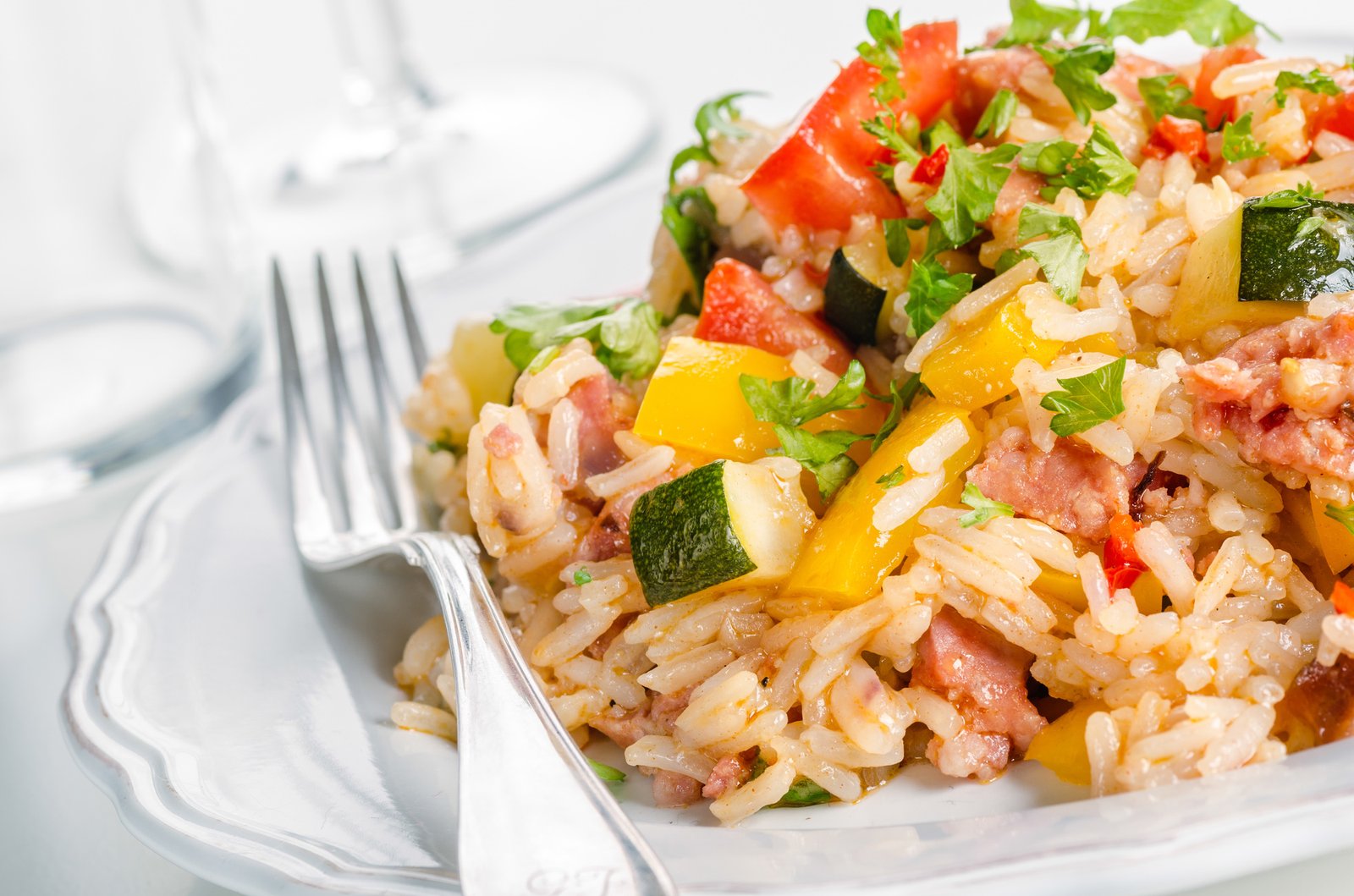 Régalez vos papilles avec ce délicieux riz aux courgettes et lardons au four, un plat réconfortant où
