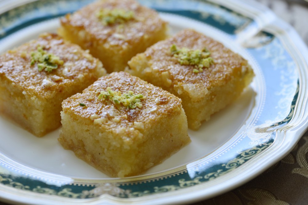 Découvrez la délicieuse basboussa au lait concentré sucré, un dessert moelleux et irrésistiblement gourmand, où la douceur